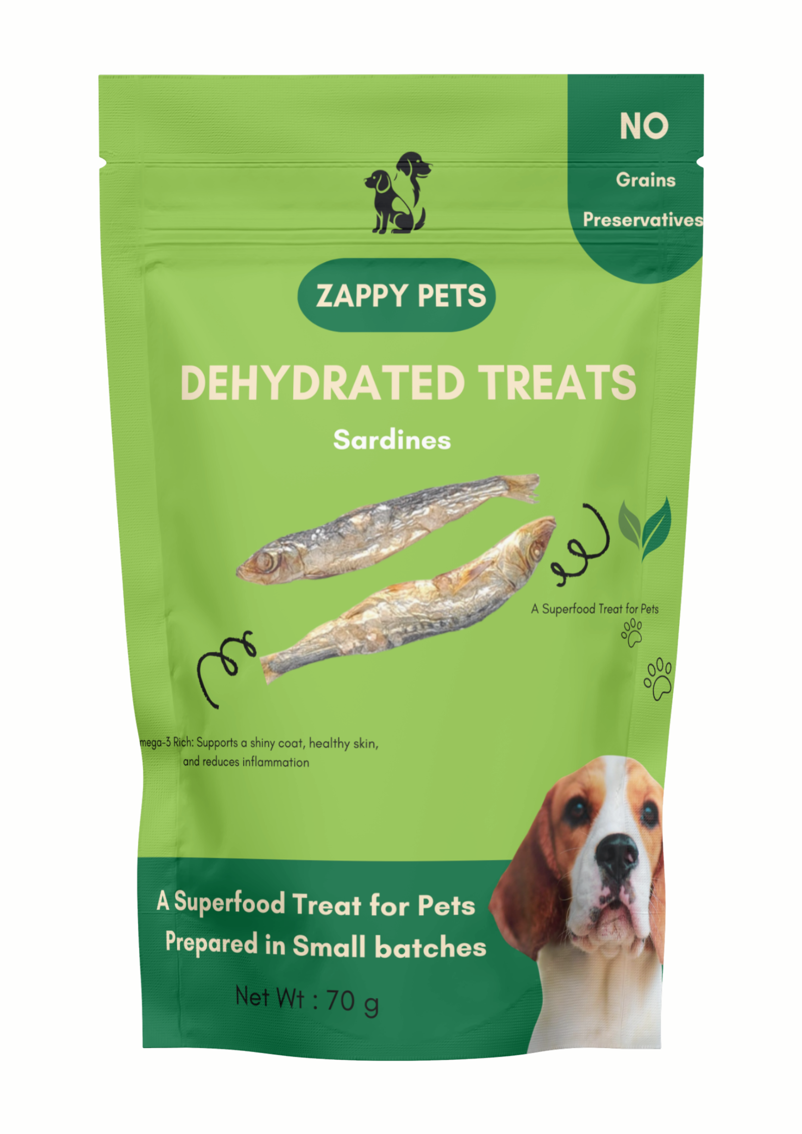 Our Dehydrated Sardines are a naturally nutrient-packed treat that supports your pet’s health from nose to tail! Gently air-dried to preserve maximum nutrition and irresistible flavor, these single-ingredient fish snacks are rich in omega fatty acids, high-quality protein, and essential minerals. Perfect for dogs and cats of all breeds and sizes, they make a crunchy, healthy reward that your pets will love.