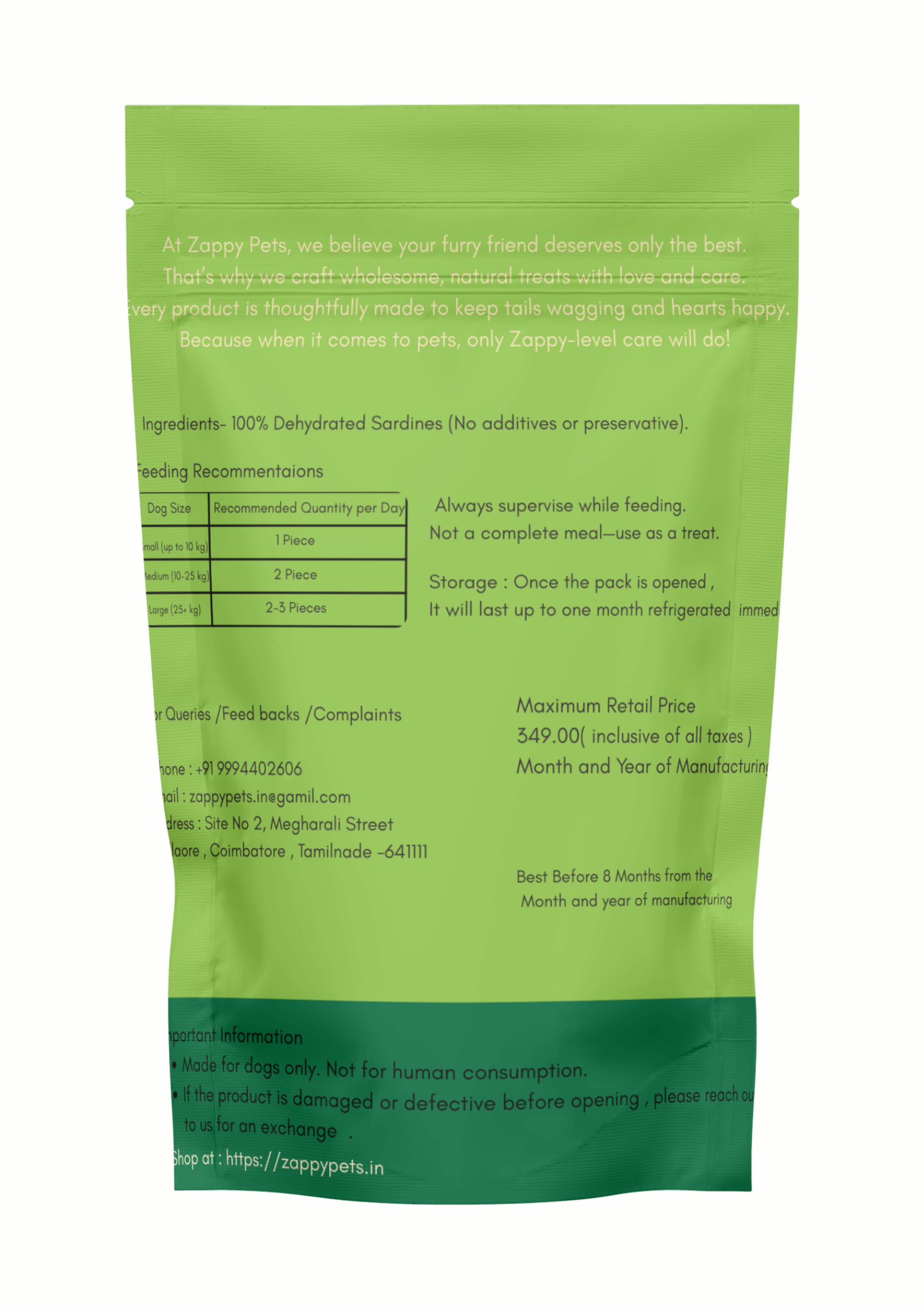 - Whole, dehydrated sardines available in packs (small, medium, or bulk).